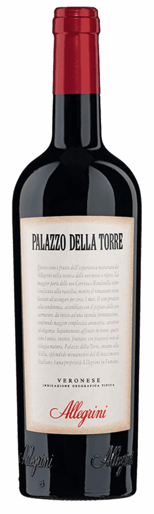 Allegrini Palazzo della Torre is één van de wijnen waardoor de familie Allegrini in één klap wereldberoemd raakte. Allegrini Palazzo della Torre is een traditionele blend van Rondinella en Corvina met een heel klein beetje (5%) Sangiovese. De wijn lijkt een beetje op een Ripasso, maar dan met meer body en complexiteit. Een deel van de druiven van Allegrini Palazzo della Torre wordt net als voor de Amarone gedroogd en daarna bij de druiven die gelijk na de oogst zijn verwerkt toegevoegd. Deze robijnrode wijn combineert gemakkelijk met vele Italiaanse gerechten, risotto met rode wijn en radicchio, porcini paddestoelen met varkensvlees, klassieke pastagerechten zoals Puttanesca en Amatriciana, lasagnegerechten, gebraden en gegrilde vleesgerechten, maar is ook lekker bij Parmaham van het Zibello varken, medium gerijpte kazen, zoals Parmigiano Reggiano, Pecorino en Monte Veronese.